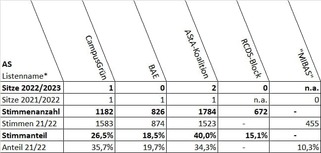Ergebnis der Wahlen zum Studierendenparlament und zum Akademischen Senat