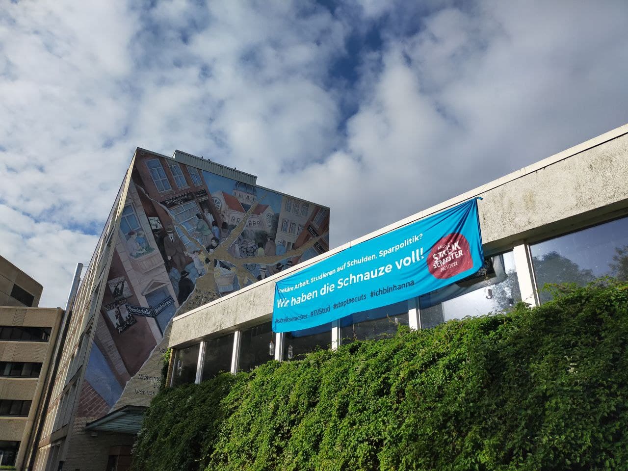 Heute wurde an der Uni Hamburg ein Hörsaal durch uns Studierende und Beschäftigte besetzt. Nach anderthalb Jahren Pandemie können wir nicht einfach so tun, als wäre nichts gewesen, denn wir sind so verschuldet wie nie und die Pandemie ist an keiner*m von uns spurlos vorbeigegangen. Mit der Besetzung fordern wir Raum, um bessere Studien- und Arbeitsbedingungen zu organisieren. Der Hörsaal der Sozialökonomie (VMP9) wurde jetzt zum Streikcafé ausgerufen, von dem aus wir unsere Forderungen nach einem studentischen Tarifvertrag, Ausfinanzierung der Hochschule, Entfristungen von wissenschaftlichen Mitarbeiter*innen und BAföG für alle lautmachen! Die Besetzung ist für uns nach den vergeblichen Kämpfen um das #Solidarsemester und #stopthecuts wichtig, um zu sagen: wir haben die Schnauze voll!